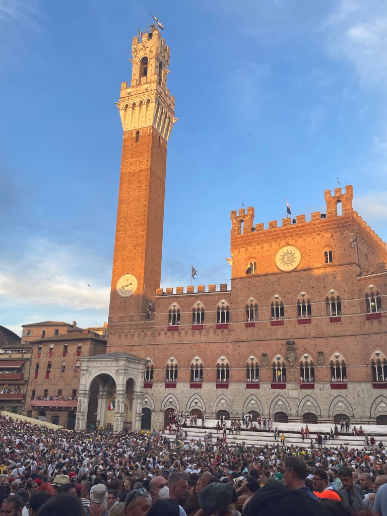 Zu Beginn, bevor man versuchen kann, in die Stadt einzutauchen, ist es sicherlich sinnvoll, den Palio einmal nüchtern zu betrachten, da dies, sobald man die Schwelle zur Gefühlswelt Sienas überschritten hat, schwerlich möglich ist. Als Palio wird ein zwei Mal im Jahr stattfindendes Pferderennen (zu besonderen Anlässen gibt es außerplanmäßige zusätzliche Rennen) auf dem zentralen Platz der Stadt, der Piazza del Campo, sowie der dazugehörige Preis für den Sieger bezeichnet, es handelt sich bei dem Wort „Palio“ demnach um eine Äquivokation, ein Wort mit unterschiedlichen Bedeutungen. Bei diesem Rennen treten die einzelnen Stadtteile, Contraden, gegeneinander an. Gewinner ist diejenige Contrade, deren Pferd als erstes die Piazza del Campo dreimal umrundet hat, was ungefähr 90 Sekunden in Anspruch nimmt. Jedes Rennpferd, barbero, wird von einem Jockey, fantino, geritten, allerdings ohne Sattel. Eine Besonderheit des Palio ist es, dass Pferde auch ohne fantino gewinnen können, sollten sie diesen unterwegs verloren haben.
